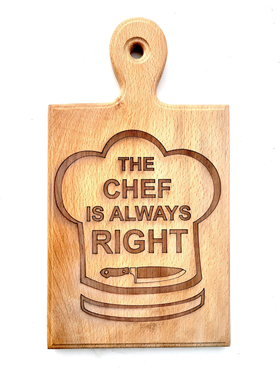 Дошка сувенірна з випалюванням "THE CHEF IS ALWAYS RIGHT" 20х38 см